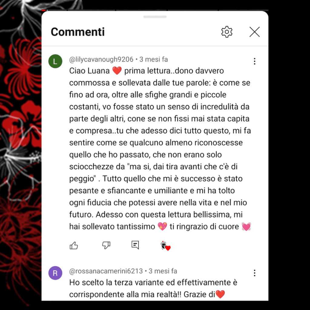 - Rivolgiti a me se vuoi la verità e sei pronto ad affrontarla. Sarò comprensiva e delicata nell’affrontare insieme a te le questioni più spinose, ma userò un linguaggio diretto e senza filtri dove necessario ed opportuno. Miro all’indipendenza della persona nelle sue scelte e nel suo percorso di vita, non al diventare la sua migliore amica falsa.