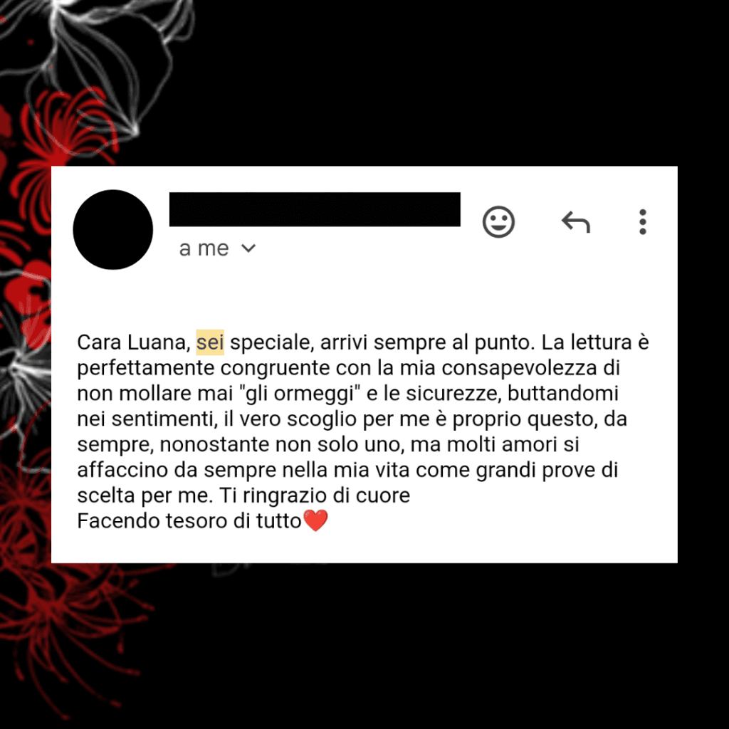 - attendi la mail di risposta che riceverai. Conterrà tutte le info per prepararti al meglio al Consulto,oltre alle istruzioni da seguire e le modalità di Pagamento.